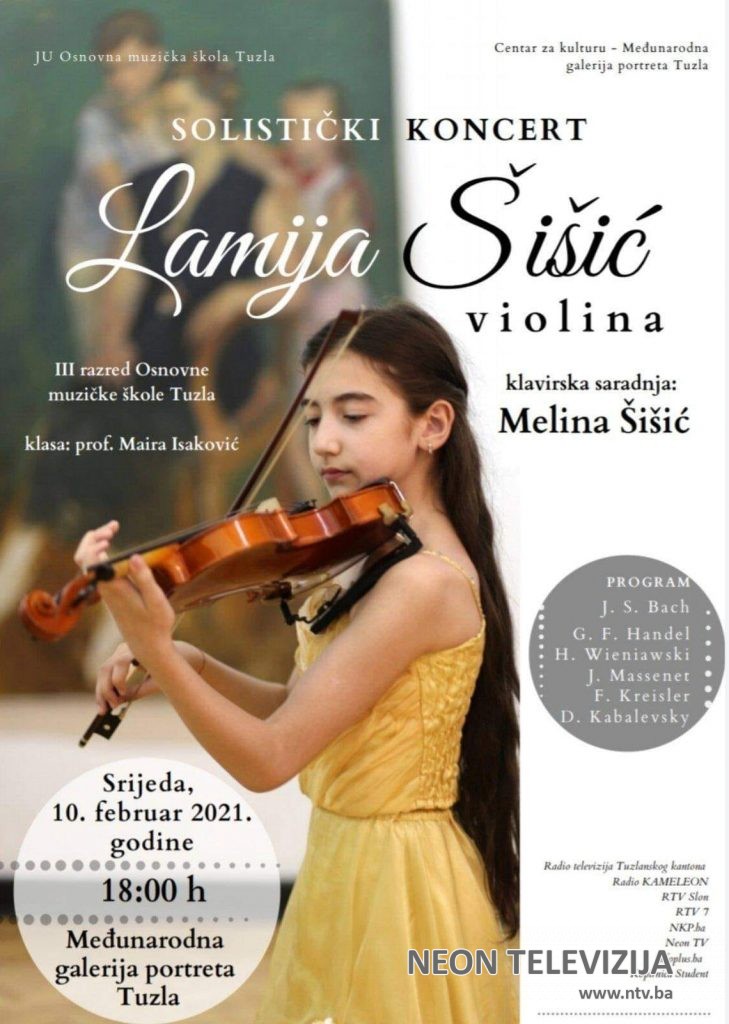 U Međunarodnoj galeriji portreta Tuzla u srijedu, 10. februara, održat će se solistički koncert violinistice Lamije Šišić.