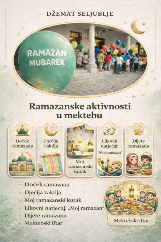 Džemat Seljublje za svoje najmlađe džematlije i polaznike mekteba i ove godine organizuje niz zanimljivih i edukativnih ramazanskih sadržaja. Djeca će kroz aktivnosti poput Dočeka ramazana, dječije vaktije, ramazanskog kutka, likovnog natječaja „Moj ramazan“ imati priliku da na poseban način dožive i razumiju ljepotu mjeseca posta. Jedna od aktivnosti jeste i mektebski iftar. Također, bit će proglašeno i dijete mjeseca ramazana (za trud, redovnost i lijepo ponašanje)
