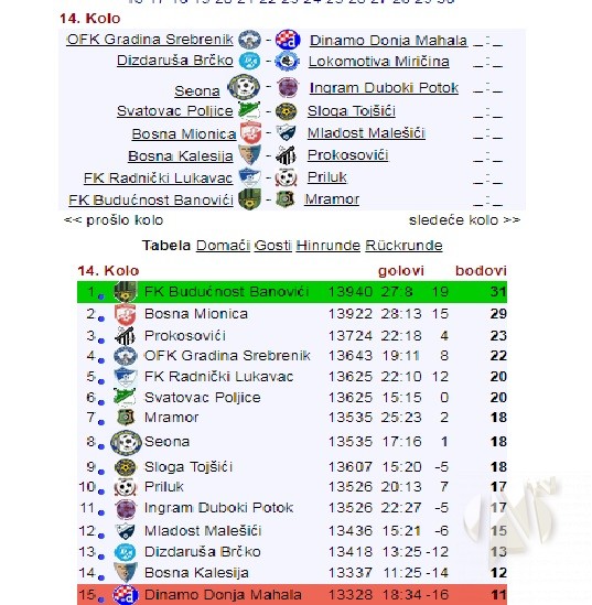 U okviru predposljednjeg kola jesenjeg dijela sezone, FK “Bosna” Kalesija dočekuje ekipu FK “Prokosovići” koja zauzima treće mjesto na tabeli.  U utakmici 13.kola momci iz Prokosovića na domaćem terenu savladali su ekipu Ingram Duboki Potok rezultatom 4:2., dok su u utakmici pomenutog kola nogometaši kalesijske “Bosne” pretrpjeli poraz u gostima. Iz uprave kluba “Bosna” Kalesija nadaju se da će u ovoj izuzetno teškoj utakmici uspjeti iskoristiti prednost domaćeg terena i upisati važne bodove. Utakmica se igra sutra na Gradskom stadionu u Kalesiji sa početkom u 13:30 sati.