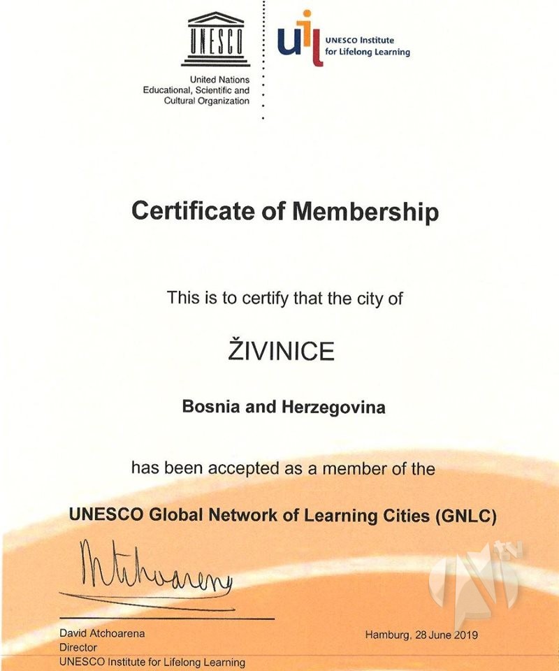 Grad Živinice je prvi grad iz Bosne i Hercegovine koji je primljen u članstvo UNESCO Globalne mreže gradova koji ulažu u obrazovanje svojih stanovnika (Global Network of Learning Cities).