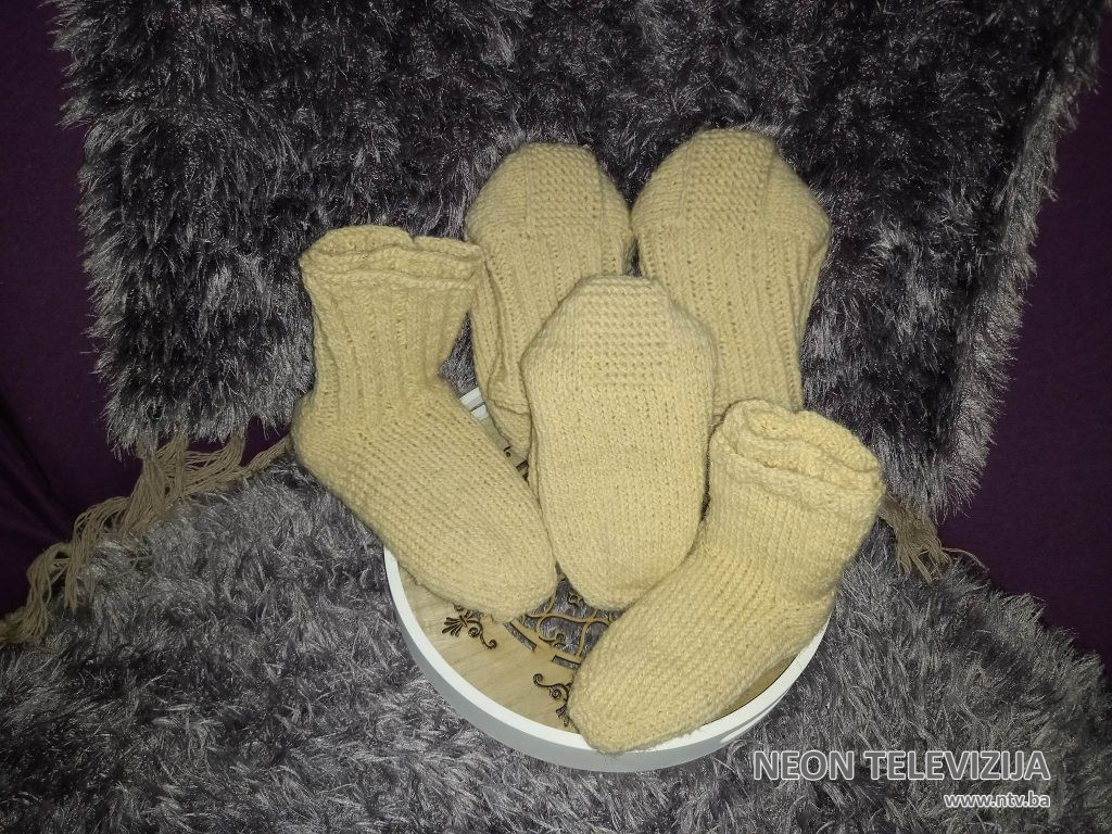 “Pletem čarape, pape, za kosu mašne, za djecu male čarape, šalove, mašnice i po neku kapicu. Isto tako od prirodne vune pletem čarape po narudžbi”.