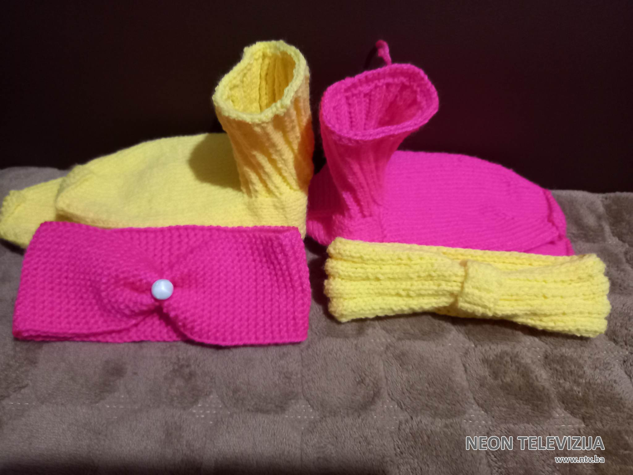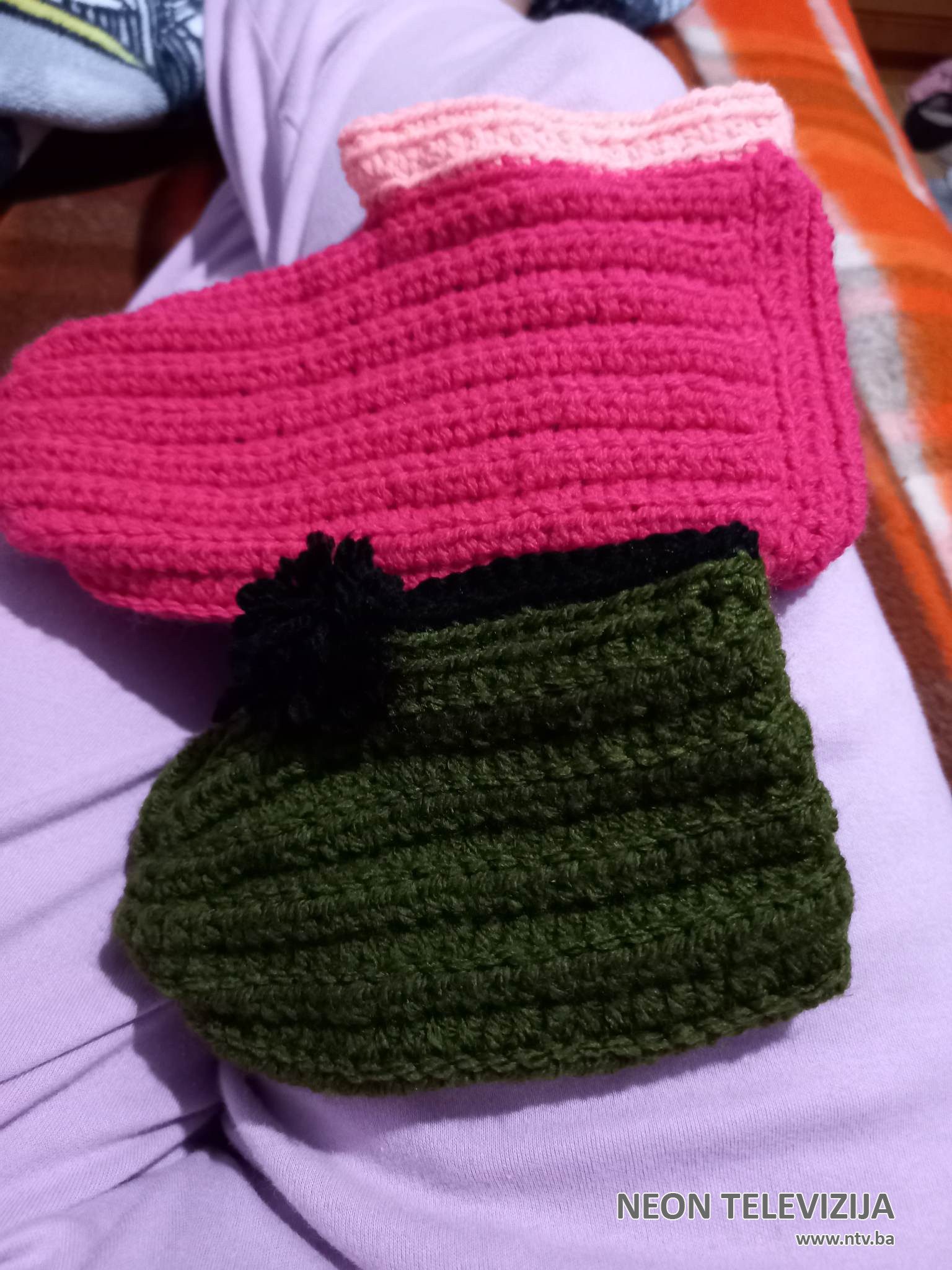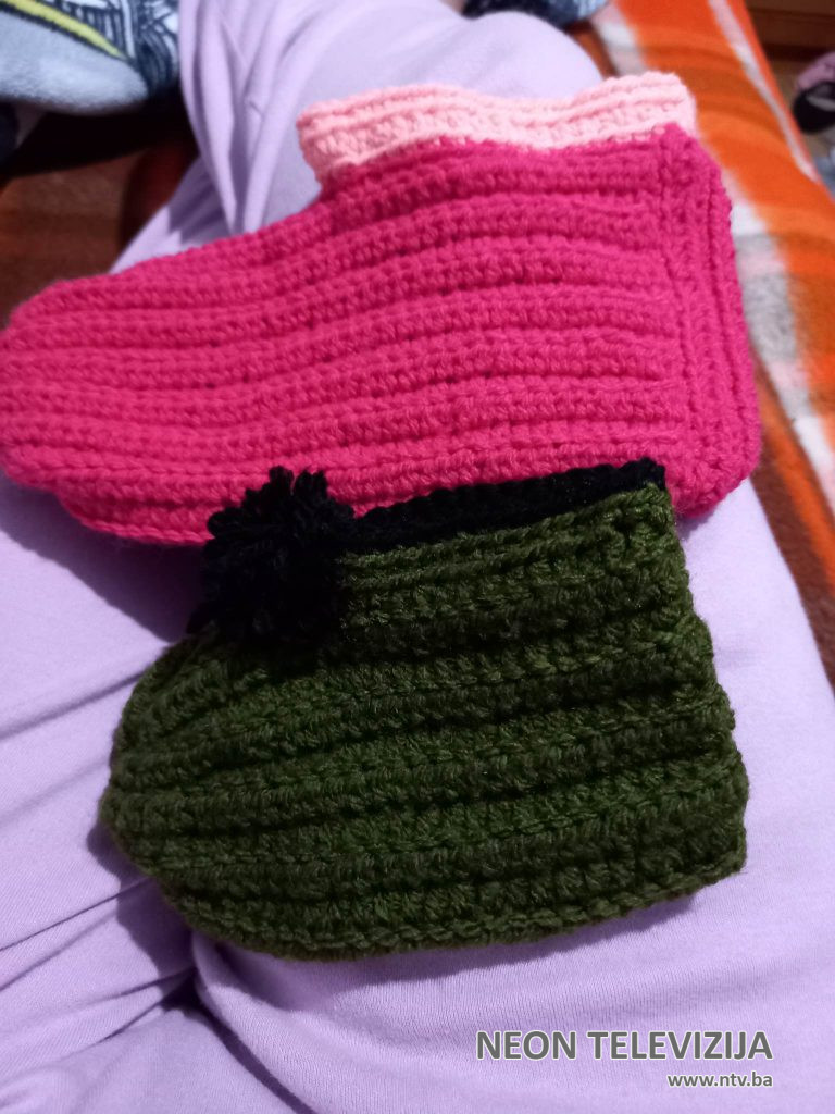 “Pletem čarape, pape, za kosu mašne, za djecu male čarape, šalove, mašnice i po neku kapicu. Isto tako od prirodne vune pletem čarape po narudžbi”.