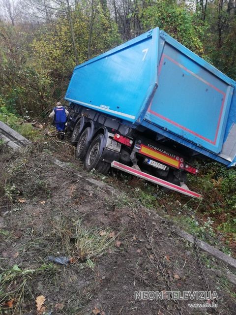 Kamion je sletio sa ceste, a o stepenu povreda vozača još uvijek nema informacija.