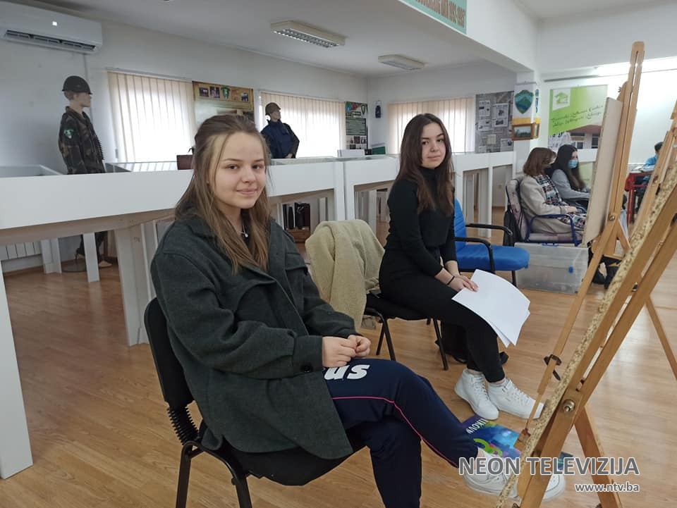 Sestre Emina i Sumeja Karić iz Kalesije Gornje zajedno su danas došle na prvi čas slikanja. Emina je prošle godine završila Školu slikanja i u želji da nastavi usavršavati svoj talenat krenula je i ove godine. Njena ljubav prema slikanju i umjetnosti bila je motivacija mlađoj sestri Sumeji da upiše Školu slikanja.
