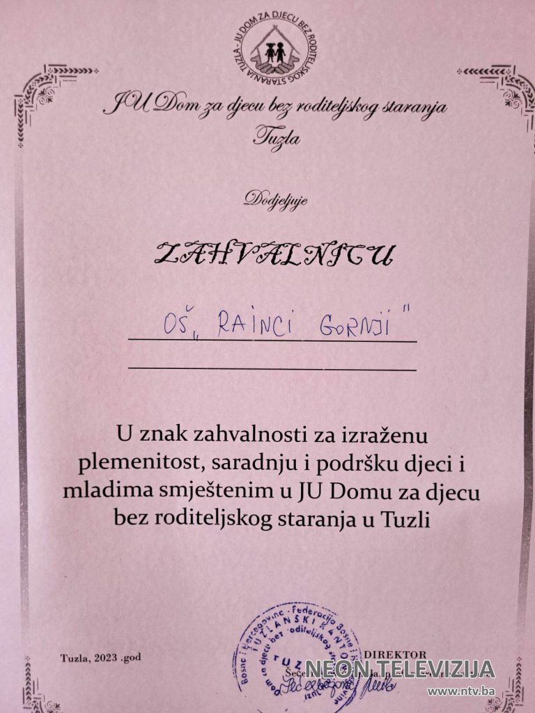Iz JU OŠ “Rainci Gornji” zahvaljuju kartonaži CPA za donaciju kutija za bajramske paketiće, kao i Samri Jakubović, roditelju koji već drugu godinu odveze paletiće u Dom, poručili su iz JU OŠ “Rainci Gornji”.