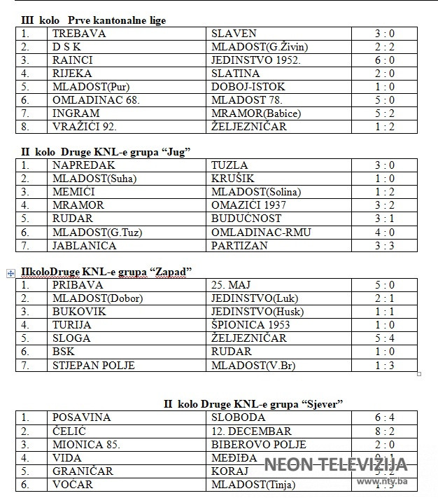 Proteklog vikenda odigrane su utakmice 3. kola Prve kantonalne lige i 2. kola Druge kantonalne lige (grupe: Jug, Zapad, Sjever) .