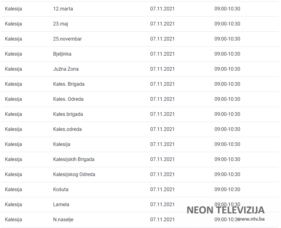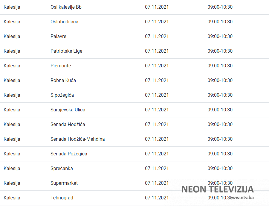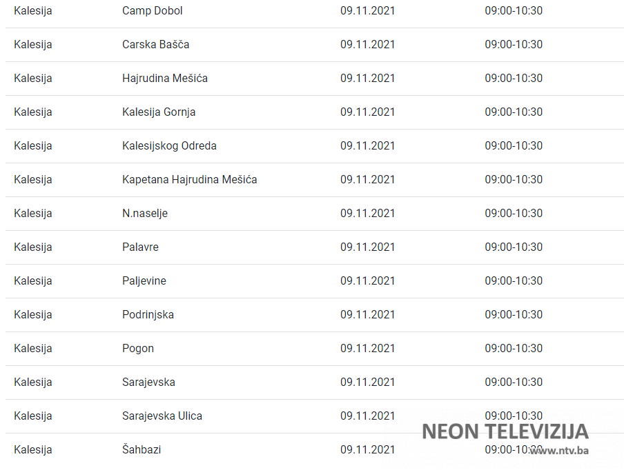 U nedjelju i utorak nekoliko kalesijskih naselja bez struje