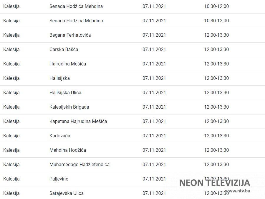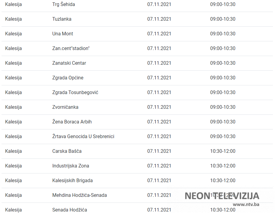 Zbog planiranih radova na elektrodistributivnoj mreži u nedjelju, 7. novembra i u utorak, 9. novembra 2021. godine, će doći do prekida u snabdijevanju električnom energijom u nekoliko kalesijskih naselja.