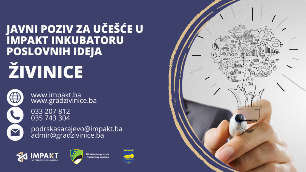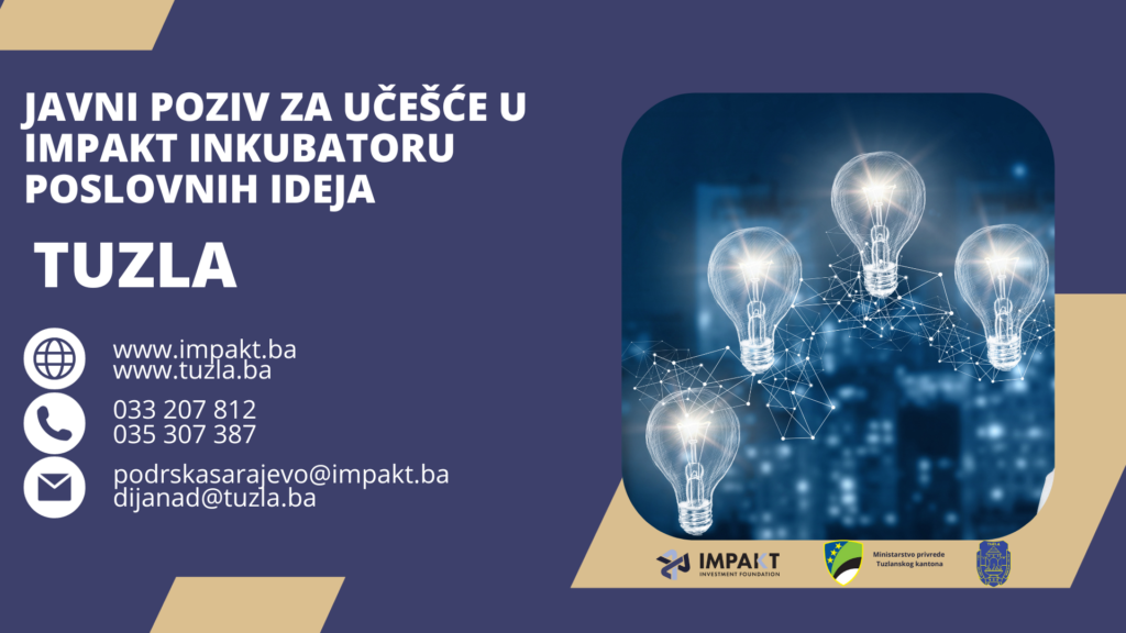 Investicijska fondacija Impakt objavila je javne pozive za učešće u IMPAKT Inkubatoru poslovnih ideja u Tuzlanskom kantonu.