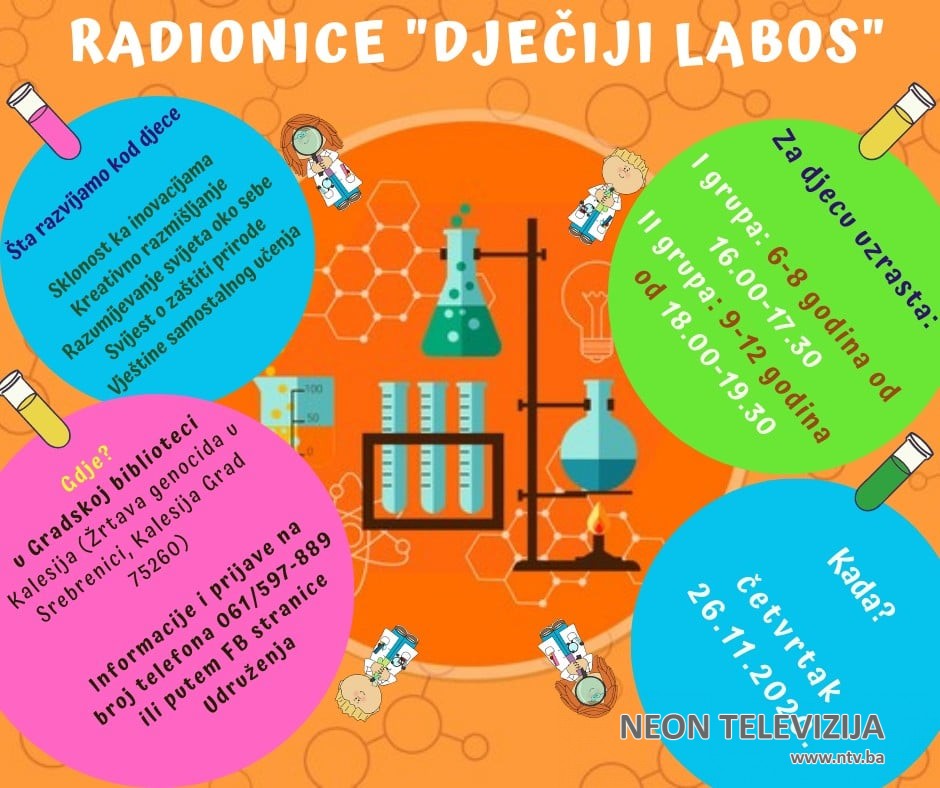 Udruženje “Snaga nezavisne žene” Kalesija u saradnji sa Međunarodnim interaktivnim otvorenim centrom organizuje radionice za djecu pod nazivom “Dječiji labos”. Cilj radionica je omogućiti djeci da dođu u kontakt sa naukom na njima prikladan i zabavan način.