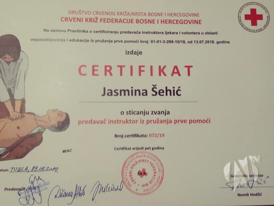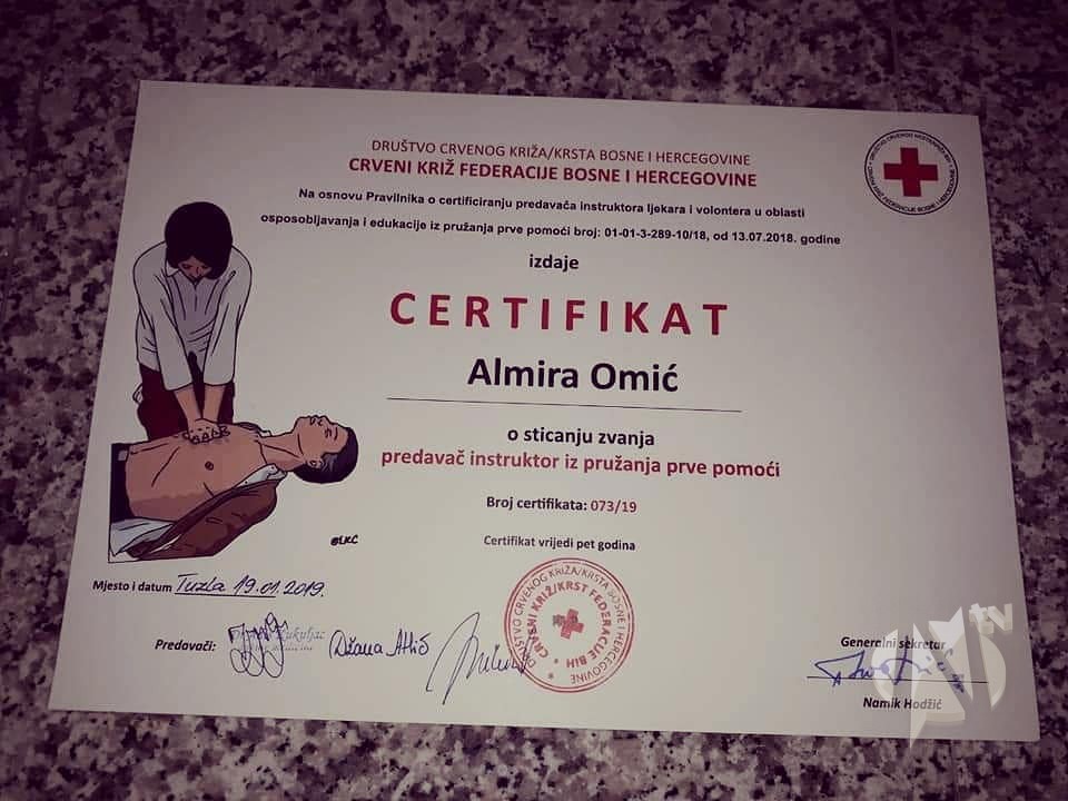 Nakon održanih radionica, Crveni križ Kalesija bogatiji je za dva nova predavača instruktora iz pružanja prve pomoći. Obuku su uspješno prošle te dobile certifikate Almira Omić i Jasmina Šehić.