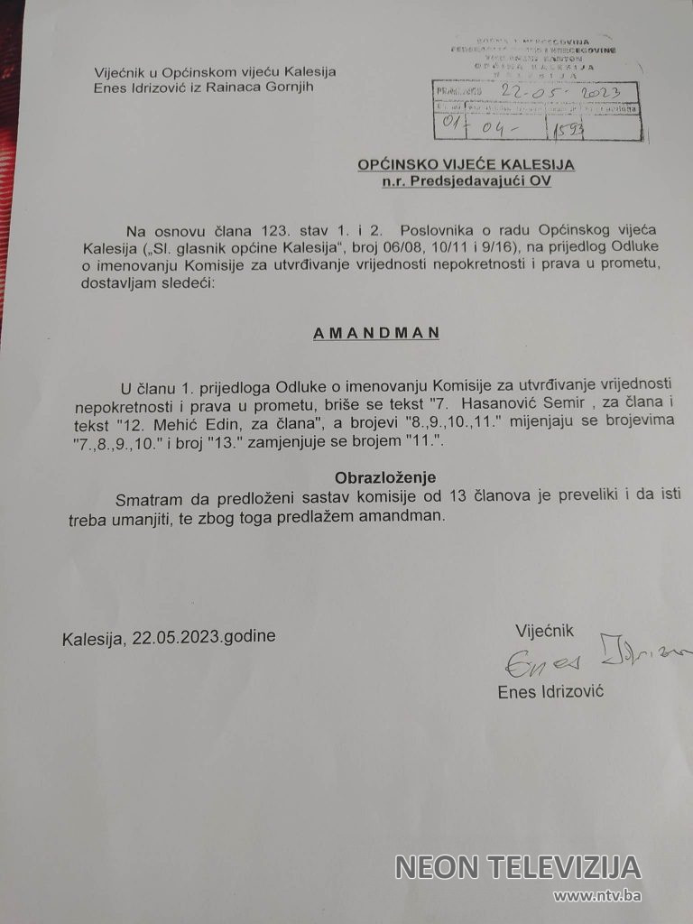 Vijećnik Enes Idrizović na sjednici će uložiti Amandman.