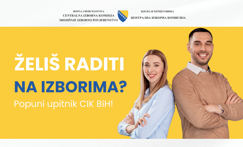 Iz Izborne komsije Kalesija dostavili su link upitnika „Upitnik za iskazivanje interesa osoba sa tehničkim znanjem i vještinama za angažman u izbornoj administraciji Bosne i Hercegovine“, koji je objavljen na službenoj web stranici Centralne izborne komisije Bosne i Hercegovine, a koji je potrebno popuniti