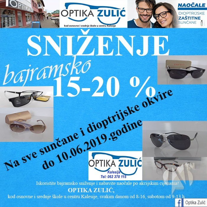 Ukoliko ste u potrazi za sunčanim ili dioptrijskim naočalima onda je ovo idealna prilika da posjetite Optiku “Zulić” jer je u toku bajramsko sniženje.