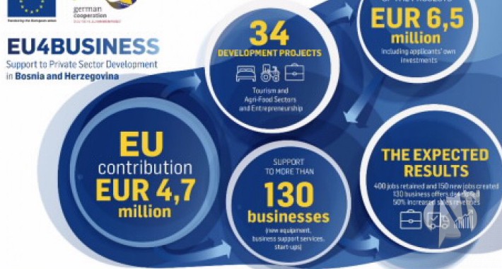 EU4Business je projekt Evropske unije kojim se nastoji ojačati kapacitet ekonomskog rasta i zapošljavanja u Bosni i Hercegovini unapređenjem konkurentnosti i inovativnosti u odabranim sektorima. EU4Business je projekt vrijedan 16,1 miliona eura, od čega 15 miliona finansira Evropska unija, a 1,1 milion eura Savezna Republika Njemačka. Projekt zajednički implementiraju GIZ, UNDP i ILO u periodu od aprila 2018. do marta 2022., navodi se u saopćenju