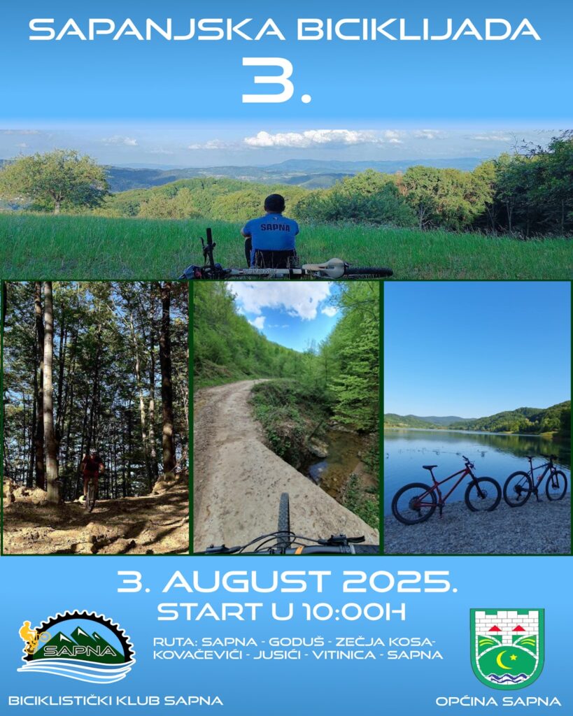 U organizaciji Biciklističkog kluba Sapna u nedjelju, 3. augusta bit će održana treća po redu Sapanjska biciklijada.