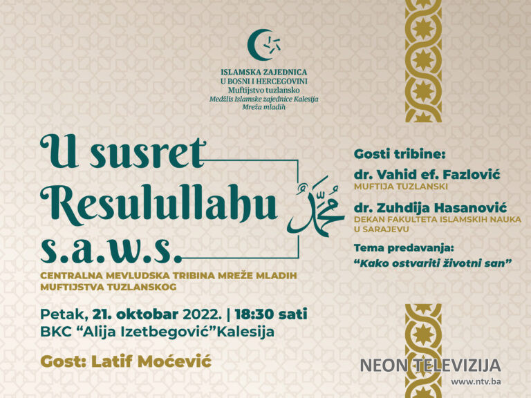 Muftijstvo tuzlansko povodom obilježavanja Mevluda – rođenja Allahovog poslanika Muhammeda, a.s., organizuje Petu centralnu mevludsku tribinu za mlade „U susret Resulullahu“.