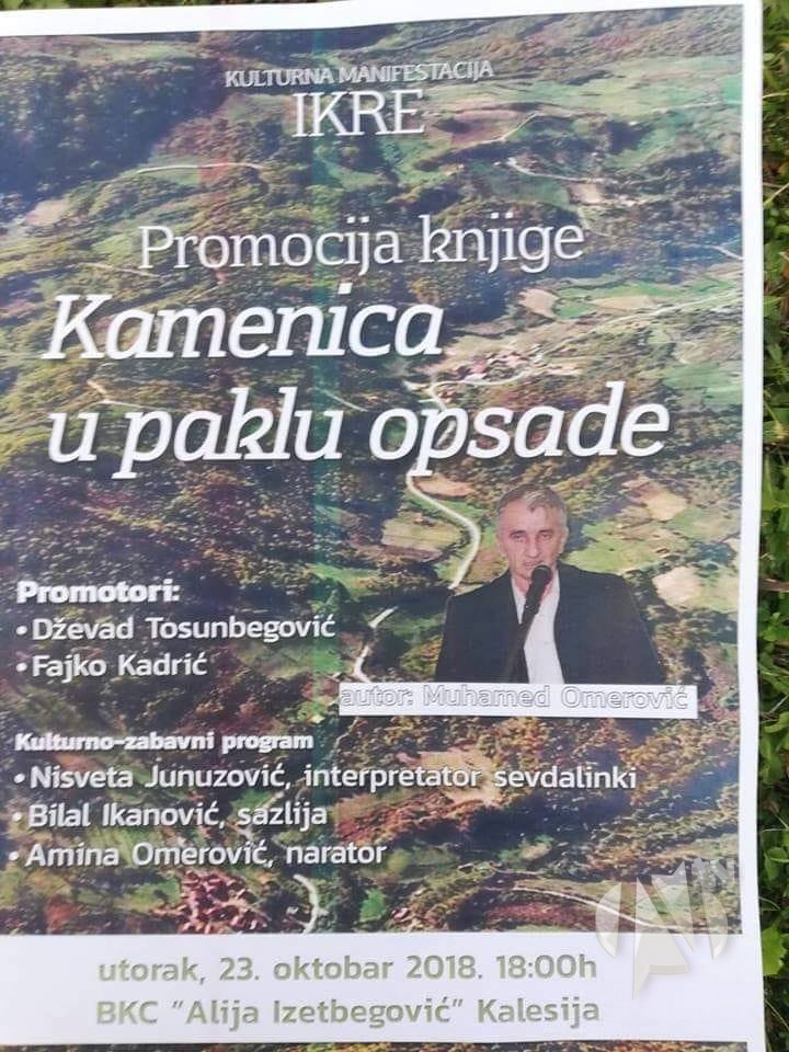 U okviru Kulturne manifestacije „Ikre 2018“, u utorak, 23. oktobra, sa početkom u 18:00 sati, u sali kalesijskog BKC-a, održat će se promocija knjige „Kamenica u paklu opsade“ autora Muhameda Omerovića.