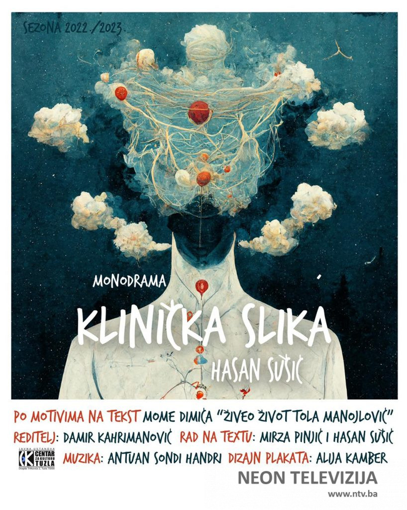 Na sceni Bosanskog kulturnog centra „Alija Izetbegović“ Kalesija u subotu, 04. februara u 19:30 sati, bit će odigrana monodrama „Klinička slika“, reditelja Damira Kahrimanovića.