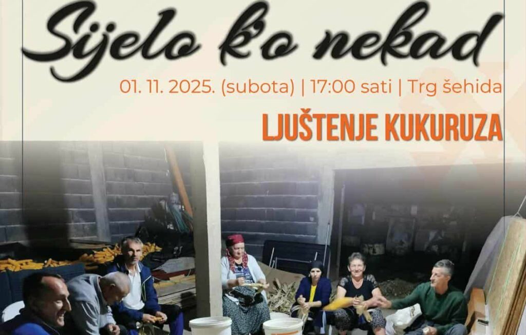 Večeras će ispred kalesijskog BKC-a s početkom u 17:00 sati biti održano “Sijelo k’o nekad – ljuštenje kukuruza”. U programu učestvuju GKUD “Halisije”, muzičar Nihad Mešić i književnik Hasan Paloš.