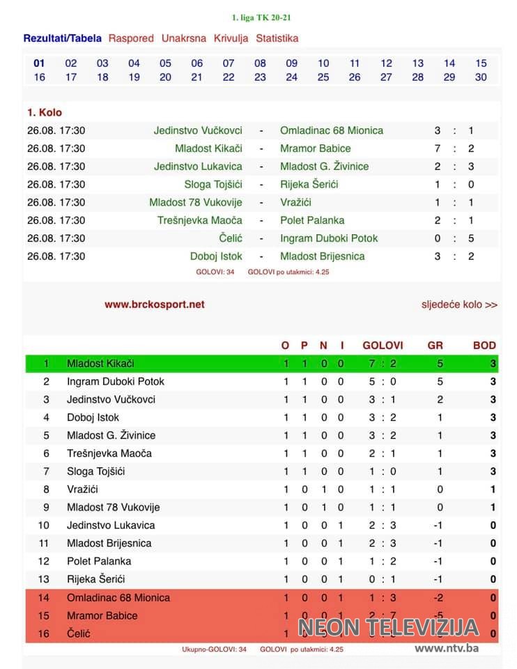 U prvom kolu Prve lige TK kalesijske ekipe igrale su na domaćem terenu, te upisale i prve bodove. Ekipe “Sloge” i “Mladosti” iz Kikača slavile su pobjede dok je takmičenje u ovom rangu FK “Mladost 78” Vukovije Donje započeo remijem.