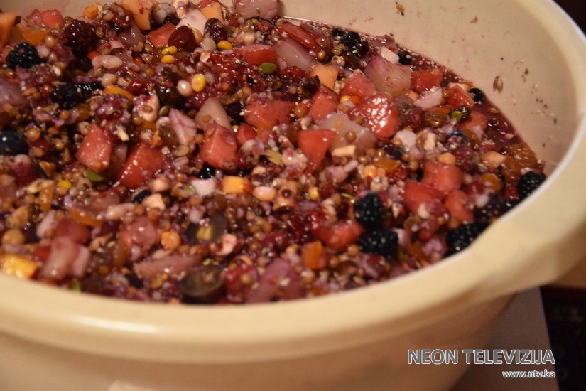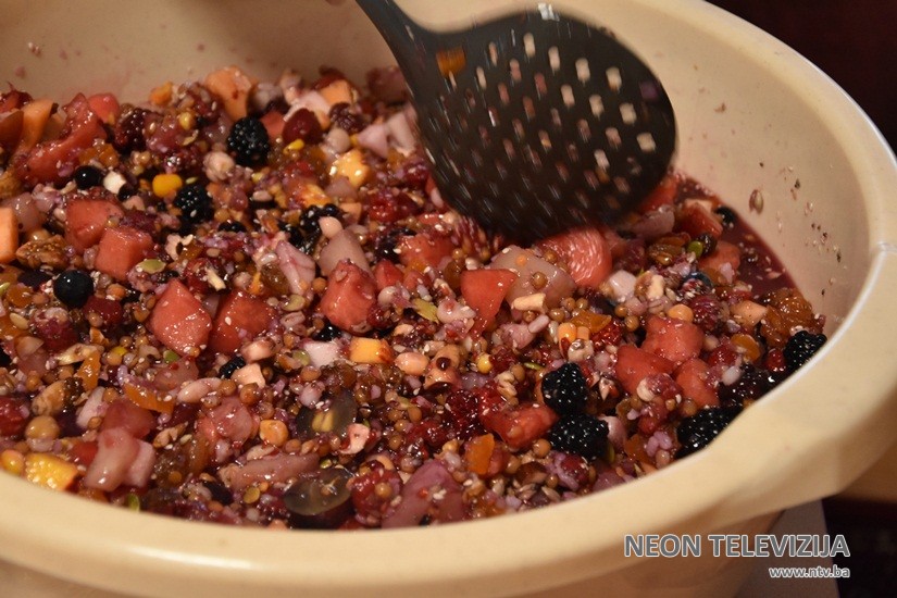 Kao što je već nekoliko puta kazala, Mevlida je praviti ašuru naučila od svoje rahmetli nene Fehime Halilović iz Sakara (Srbija). Ratne 1993.godine Mevlida je u svojoj kući, od nekih 16 namirnica napravila ašuru i tako nastavila svake godine. Danas pomenutu, slobodno možemo reći poslasticu, pravi od skoro 70 namirnica. Žitarice su, ističe naša sagovornica, glavni sastojak. Dodaje se razno voće pa i nešto od povrća. U ašuru se može koristiti i zamrznuto voće, te kompoti.