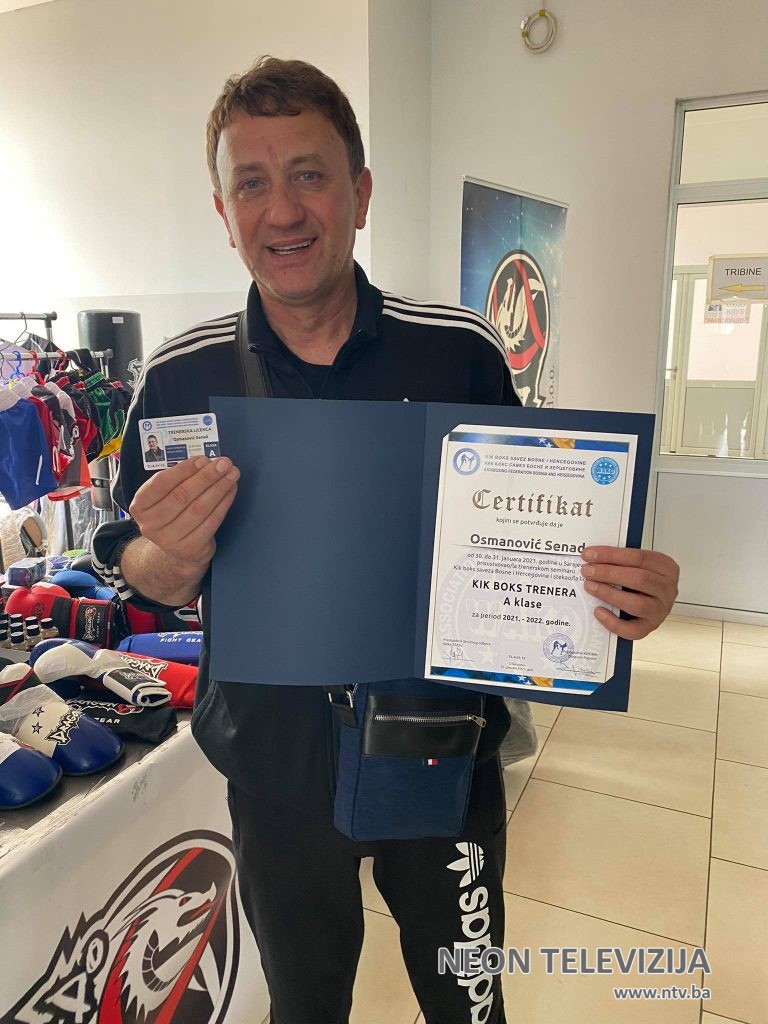 Certifikat je uručen i treneru KBS “Golden team” Kalesija Senadu Osmanoviću, čime je stekao licencu Kik boks trenera A klase za period 2021.-2022. godina.