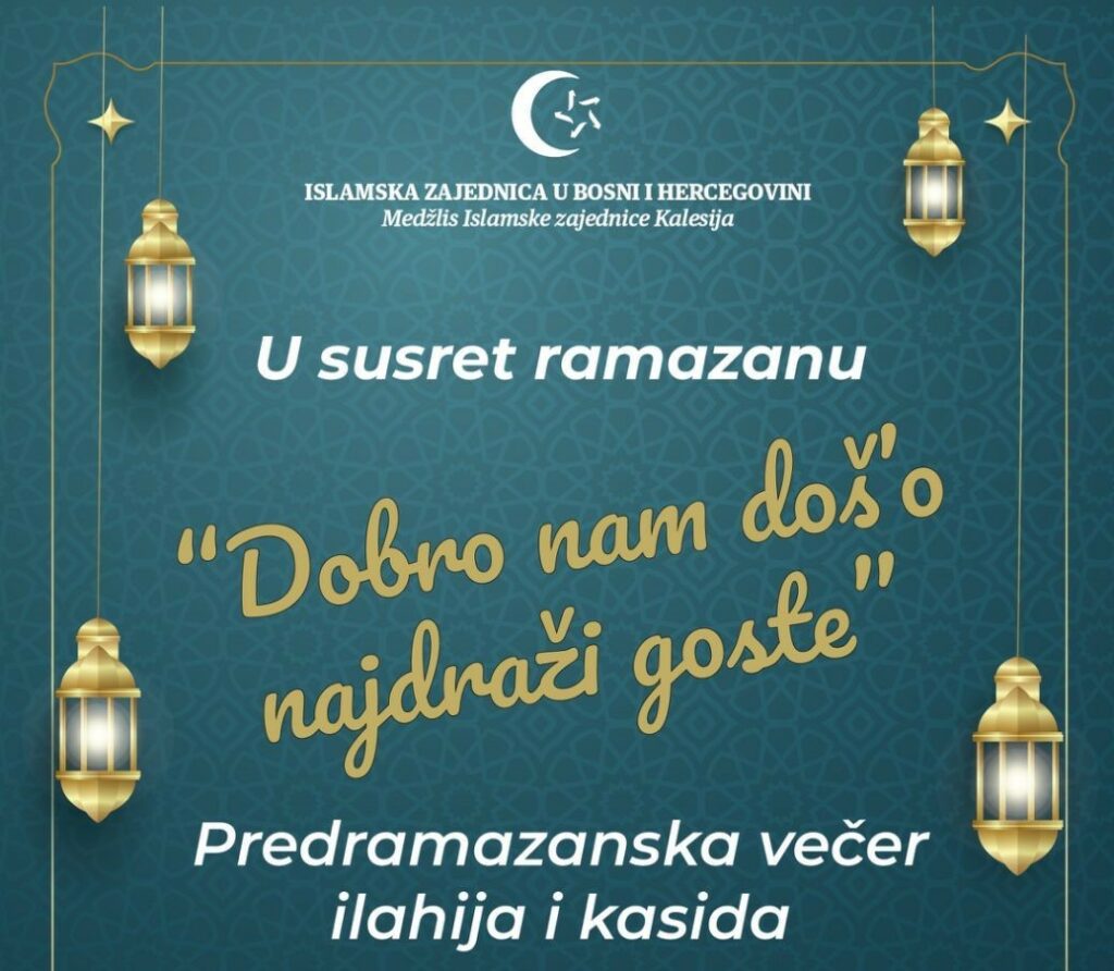 U srijedu, 6. marta 2024. godine, sa početkom u 16.30 sati, u velikoj sali kalesijskog BKC-a, održat će se predramazanska manifestacija „Dobro nam doš'o najdraži goste“. Svečani program povodom mubarek šehr-i ramazana izvrest će Hor Behram-begove medrese u Tuzli.