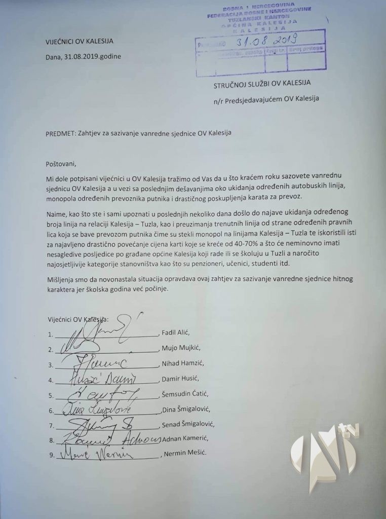 Razlog sazivanje tematske sjednice Općinskog vijeća je drastično poskupljenje cijena autobuskih karti, nakon što je preduzeće GSP Tuzla od Hankoma iz Kalesije preuzelo linije broj 13 i 11 na relacijama Kalesija – Tuzla.