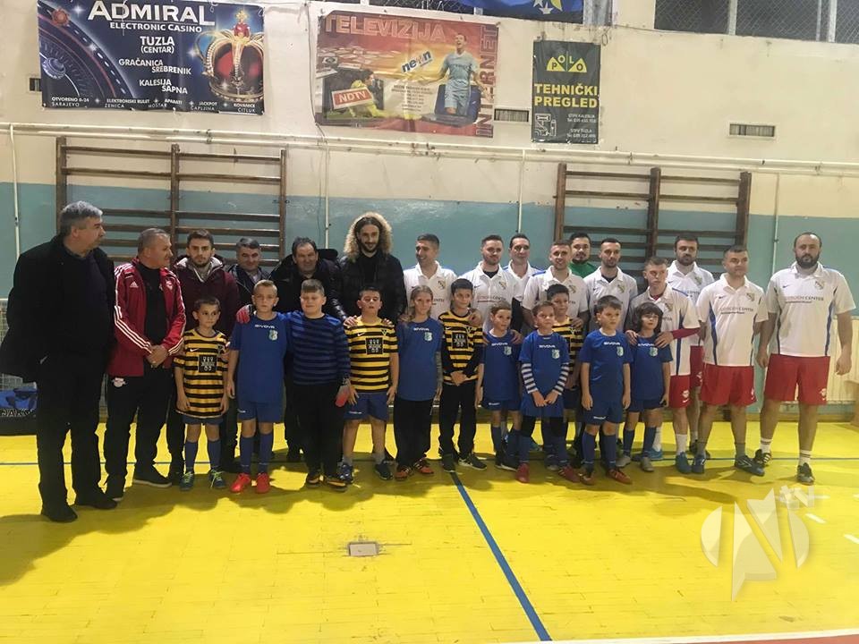 Reprezentativac BiH Eldar Ćivić publici je poklonio nekoliko lopti sa potpisom, a po jednu loptu poklonio je i OŠ „Kalesija“ i MSŠ Kalesija.