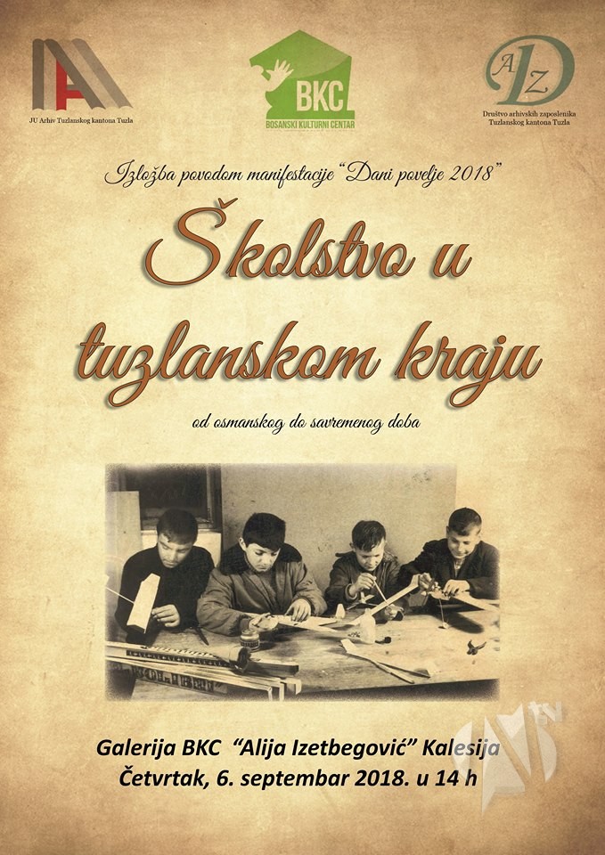 U okviru manifestacije „Dani Povelje 2018“, JU BKC „Alija Izetbegović“ Kalesija, u saradnji sa Arhivom Tuzlanskog kantona i Društvom arhivskih zaposlenika TK, u četvrtak, 6. septembra, sa početkom u 14,00 sati, će otvoriti izložbu pod nazivom “Školstvo u tuzlanskom kraju od osmanskog do socijalističkog perioda”.