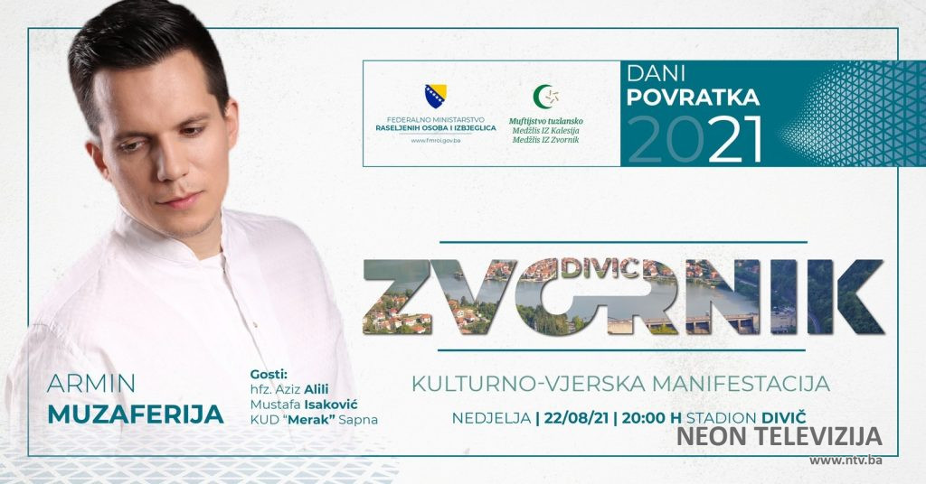 U nedjelju, 22 augusta 2021. godine, održat će se manifestacija “Dani povratka 2021”.Manifestacija će se održati u povratničkom naselju Divič kod Zvornika na lokalnom stadionu, gdje se tokom dana organiziraju Omladinski susreti, a u 20.00 sati je planiran koncert bosanskohercegovačkog umjetnika Armina Muzaferije sa gostima.