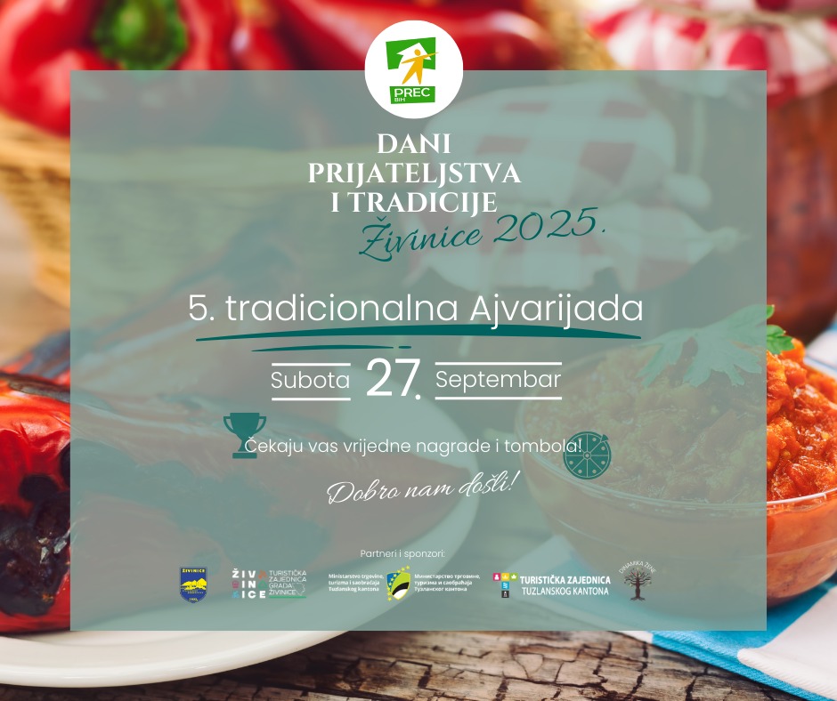Ajvarijada će se održati u subotu, 27. septembra 2025.godine, ispred prostorija udruženja PREC-a, koje se nalaze u Gračanica Selu, sa početkom u 10:00 sati.