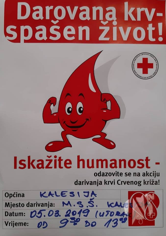 Organizatori akcije pozivaju dobrovoljne davaoce krvi sa područja općine Kalesija da se odazovu akciji darivanja krv .