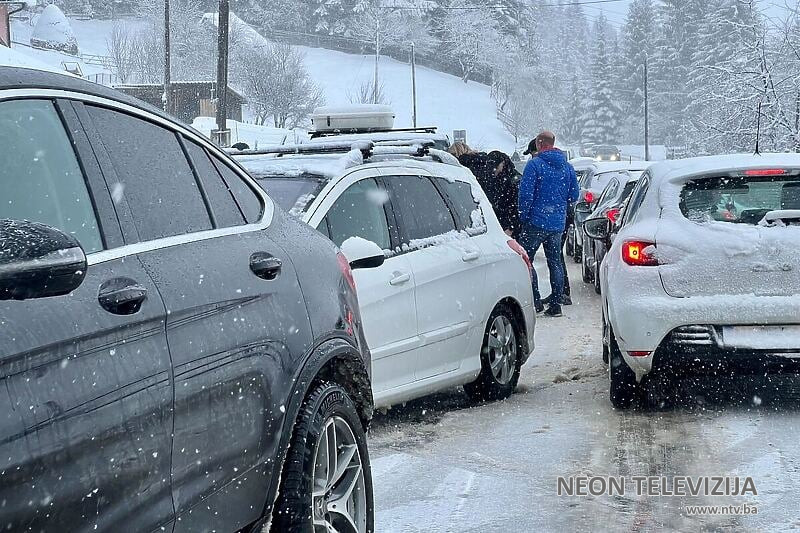 Zbog snijega koji neprekidno pada, što uz jake udare vjetra otežava vidljivost i kretanje automobila, na cesti koja iz Sarajeva vodi ka Jahorini, saobraćaj se odvija usporeno.