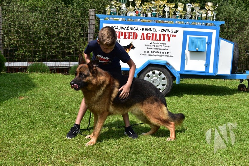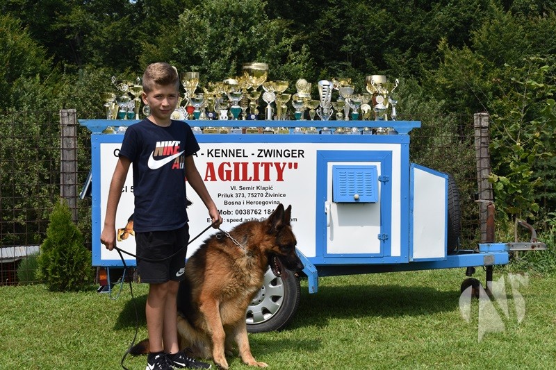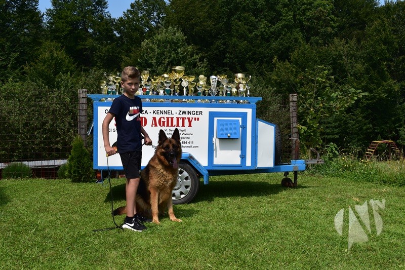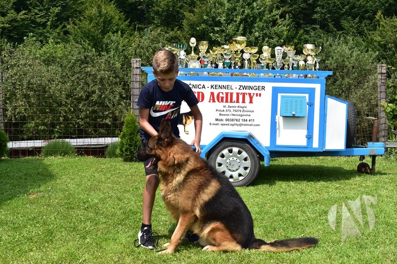 “Imam Sibirskog haskija star je 7, 5 mjeseci. Pomalo ga dresiram. I za sada mi dobro ide. Ove godine sam učestvovao na dva takmičenja za najboljeg mladog vodiča pasa sa dugodlakim njemačkim ovčarom Astrom. U Žepču sam osvojio prvo mjesto a u Doboju sam potvrdio svoju ljubav, upornost i želju za uspjehom i ponovo osvojio prvo mjesto. Volio bih jednog dana da i ja imam svoju uzgajivačnicu, da radim sa psima” kaže Malik pokazujući nam šta je sve načuio Astru.