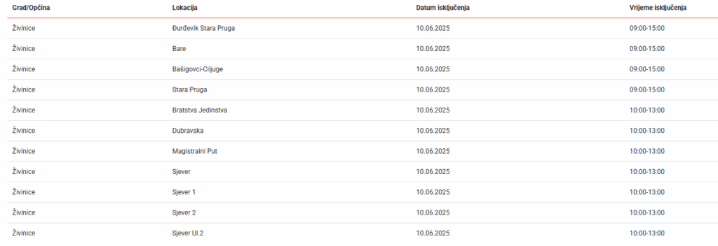 U nekoliko živiničkih naselja danas će doći do privremene obustave isporuke električne energije, najavljeno je iz Elektroprivrede.