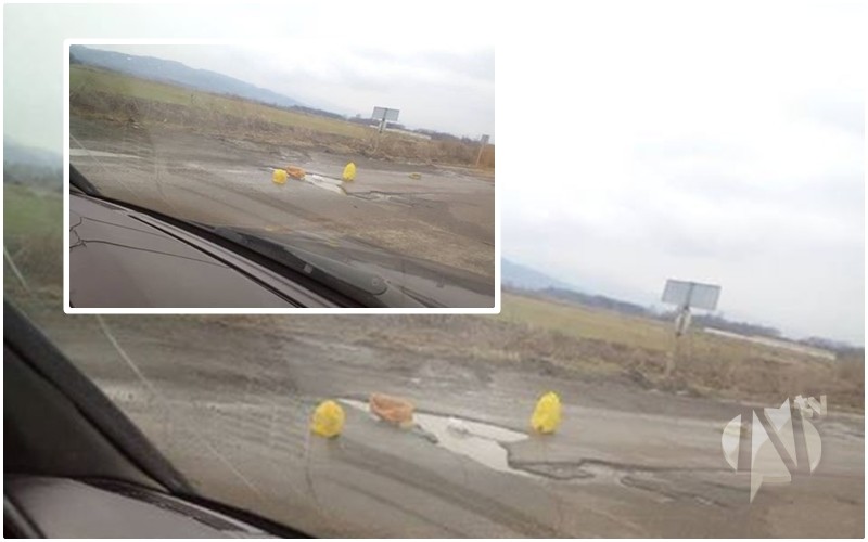 Kako bi spriječili moguću štetu, mještani “Masla” odlučili su da označe raznim predmetima rupe, kako bi upozorili vozače na vrijeme.