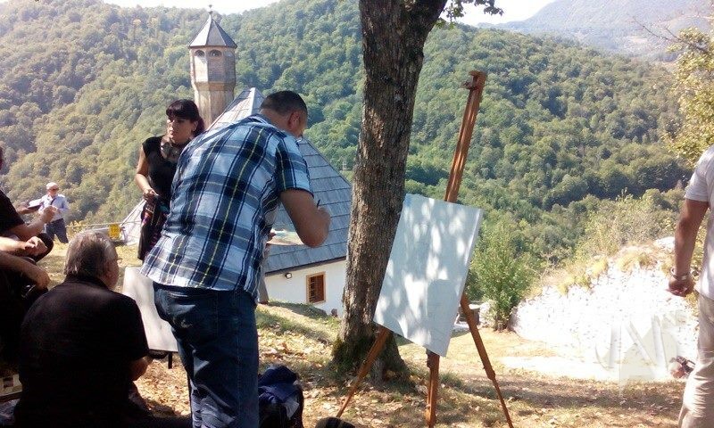 Drugi dan kolonije “Klik Džafići 2017” održan je na špicastoj stijeni Kušlat u zvorničkom naselju Pahljevići kod Drinjače. Svježi zrak, umirujuća tišina i dominantni prizor građevine bili su dovoljna inspiracija umjetnicama koji su uglavnom oslikavali upravo motiv džamije.