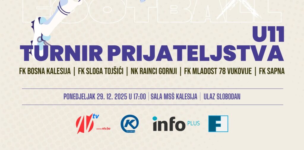 U organizaciji Općine Kalesija, BKC “Alija Izetbegović“ Kalesija i Sportskog saveza, 29. 12. 2025. godine održat će se drugi Turnir prijateljstva u malom nogometu za dječake uzrasta U11.