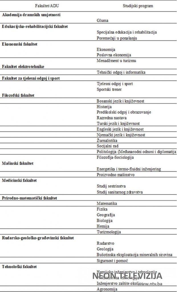 Na Univerzitetu u Tuzli će se organizovati drugi upisni rok za upis studenata u prvu godinu prvog i integriranog prvog i drugog ciklusa studija na fakultete/Akademiju Univerziteta u Tuzli u akademskoj 2020/21. godini, na studijske programe na kojima je ostalo upražnjenih mjesta po okončanju prvog upisnog roka kako slijedi: