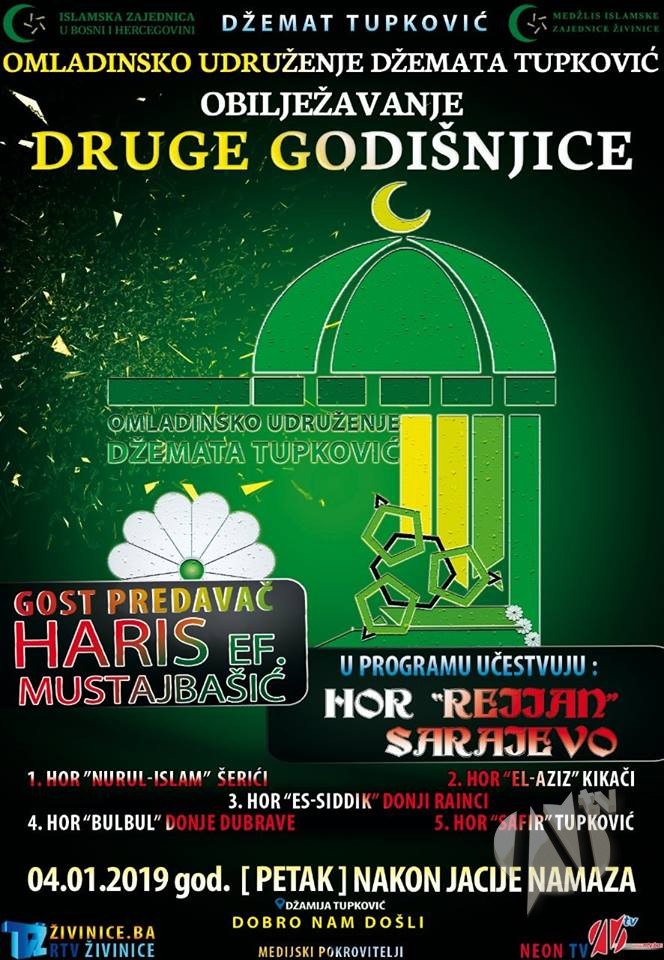 Omladinsko Udruženje džemata Tupković obilježit će drugu godišnjicu od osnivanja udruženja. Svečani program bit će upriličen u petak 4.1.2019. godine, nakon jacije namaza.
