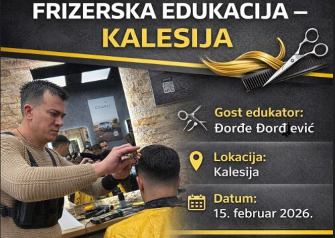 Kalesija će 15. februara 2026. godine biti domaćin stručne frizerske edukacije koju će predvoditi renomirani edukator Đorđe Đorđević, a događaj se realizuje u saradnji sa kolegama Farisom Mehanovićem i lokalnim domaćinima.