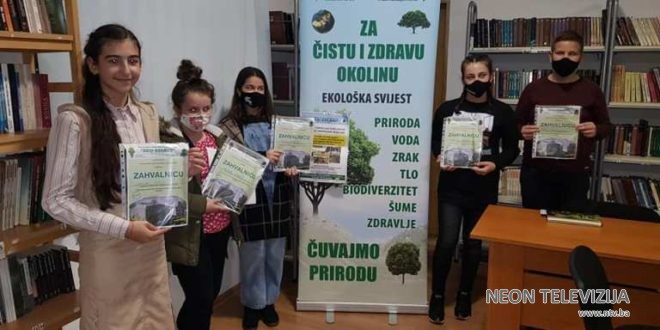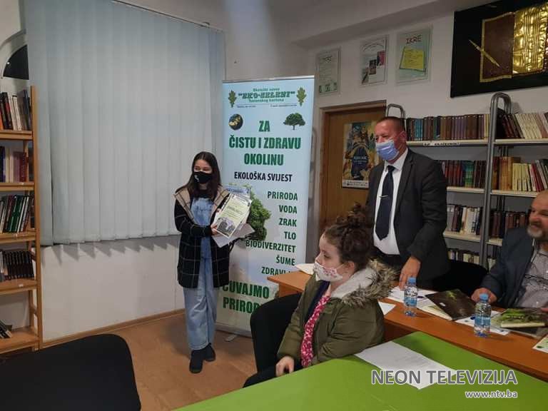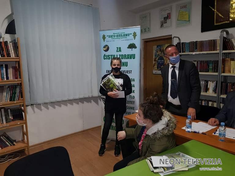 U prostorijama kalesijske biblioteke zahvalnice, novčane nagrade, knjige i edukativni materijal pobjednicima natječaja uručio je prof. dr. Muhamed Omerović, predsjednik EKO – ZELENIH TK.