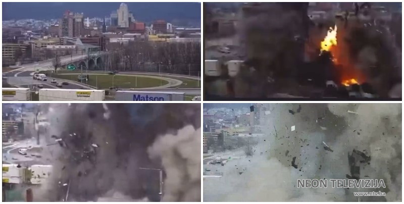 Na snimku trenutka detonacije objavljenom na televiziji vidi se kako je eksplozija podigla u nebo plamen, dim, prašinu i krhotine.