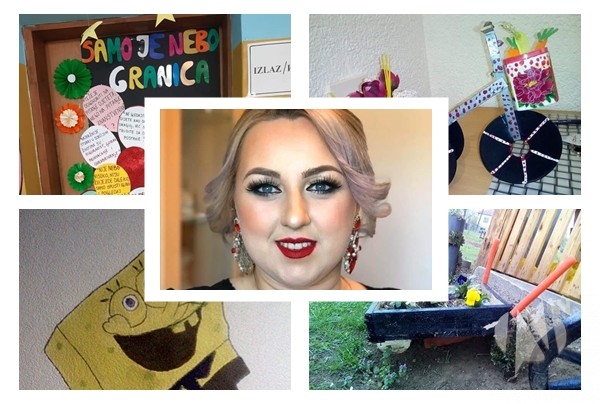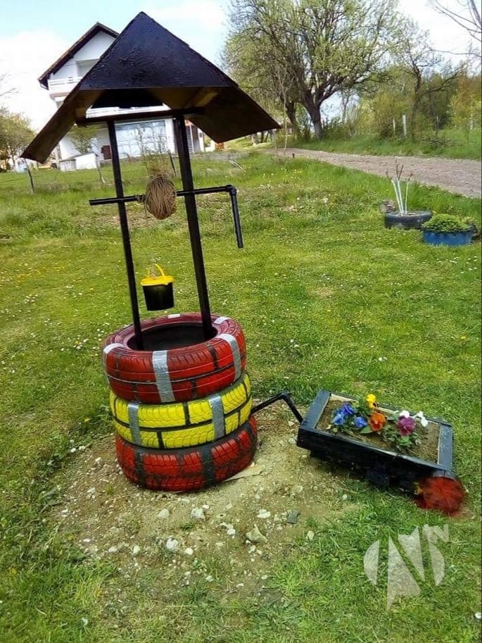 Zahvaljujući njenoj kreativnosti na neobičan način uredila je i svoje dvorište. Od drvenih kolica napravi prelijep ukras za cvijeće. Od starih guma ljujaške za djecu. Sve što pronađe, iskoristi na najbolji mogući način.