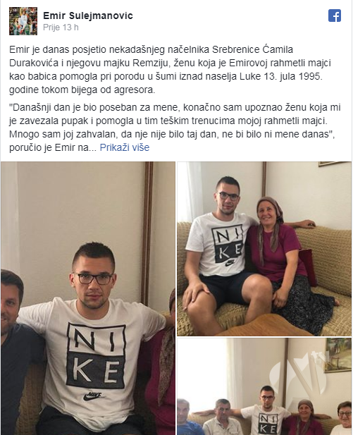 – Današnji dan je bio poseban za mene, konačno sam upoznao ženu koja mi je zavezala pupak i pomogla u tim teškim trenucima mojoj rahmetli majci. Mnogo sam joj zahvalan, da nje nije bilo taj dan, ne bi bilo ni mene danas – poručio je Emir nakon posjete Remziji Duraković, inače majci nekadašnjeg načelnika Srebrenice Ćamila Durakovića.