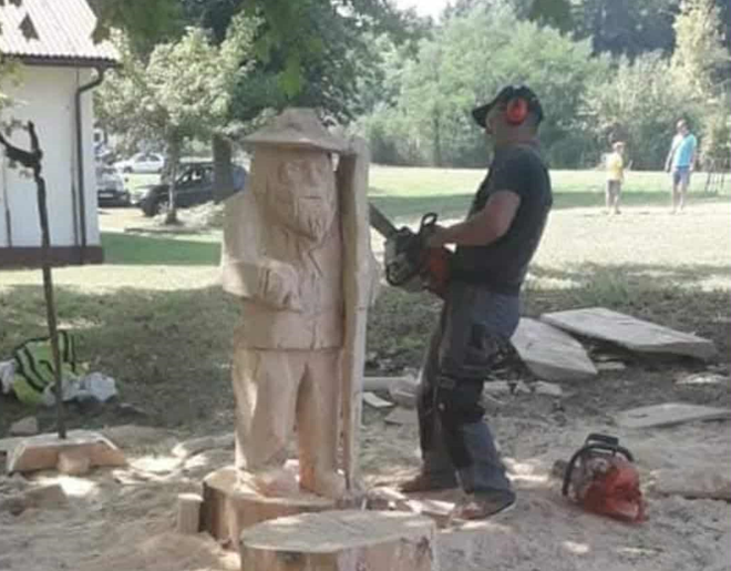 Kada vidimo motornu pilu ili nardoski rečeno motorku odmah pomislimo na pripremu drva za zimu. Međutim, ima i onih koji sa motornom pilom rade razne drvene sklupture. Jedan od njih je i Enis Idrizović iz kladanjskog naselja Pauč. Enis je ljubav prema obradi drveća naslijedio od oca.