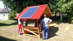 “Solarni šadrvan” radila je kalesijska firma, a isti će biti postavljen u dvorište škole i služit će učenicima i nastavnicima za odmor, učenje, ali i druge svrhe, poput punjenja baterija na laptopu, mobitelu, a sve to električnom energijom dobijenom od Sunca.