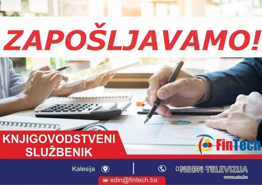 FinTech d.o.o. Kalesija zbog povećanog obima posla traži radnika za radno mjesto knjigovodstveni službenik.